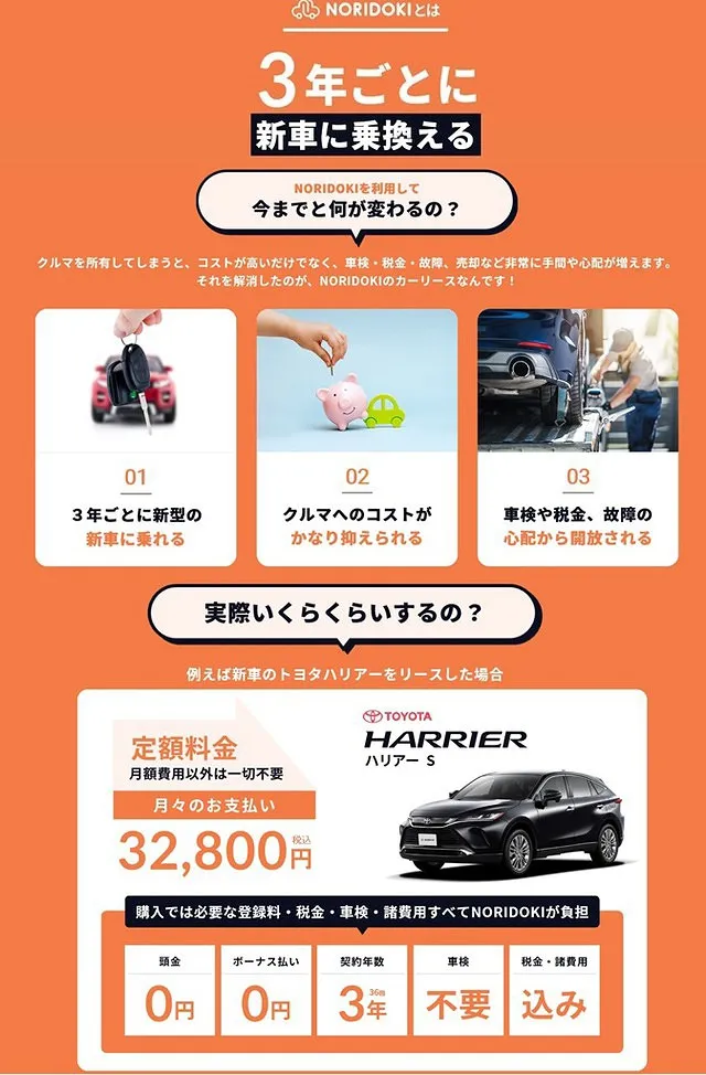 面倒な自動車税はNORIDOKIが負担します。3年で手放すから車検も不要です(^^♪