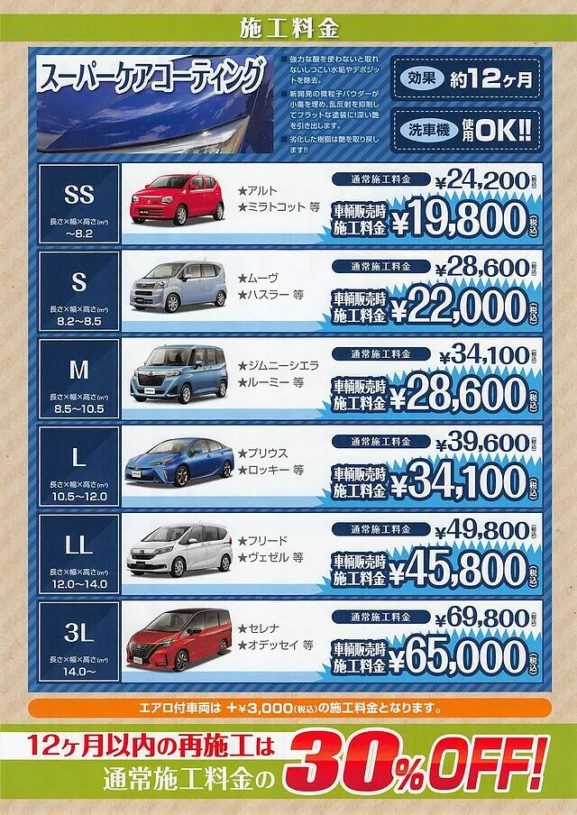 スーパーケアコーティング(親水タイプ)¥20,000~